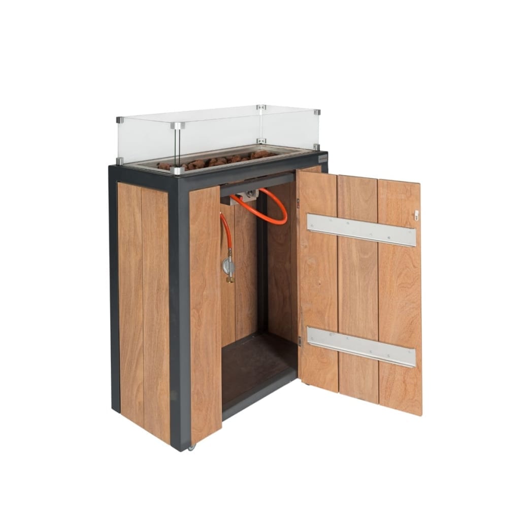 De vuurzuil rectangle is een sfeervolle vuurzuil met een ingebouwde gashaard en een RVS brander van 10,5 kW. Door middel van een regelknop kun je de hoogte van de vlam zelf bepalen en is het in mum van tijd lekker warm op je terras. Deze vuurzuil is gemaakt van hardhout en staal, wat een stoere look geeft.